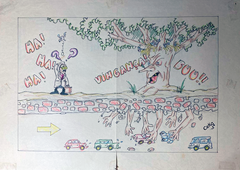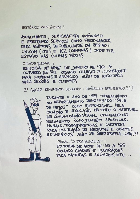 Durante essa época, também participei de algumas edições do Salão de Humor de Piracicaba, criei capas de discos para bandas de amigos, logotipos para empresas locais e estampas para camisetas. Mais tarde, entre 1986 e 1988, fui chargista do Jornal O Trabalhador (Salto) e da Revista Boa Vida (Itu). Em 1990 assumi as ilustrações do Cidade Jornal (Salto, Itu e Indaiatuba), com o qual já colaborava, até o fim de suas atividades em 1991. Depois disso, acabei virando dono de escola de idiomas e só desenhei para o meu filho… rsrs… Aqui, neste portfólio em constante construção, vou revivendo lembranças enquanto abro meu velhos baús.